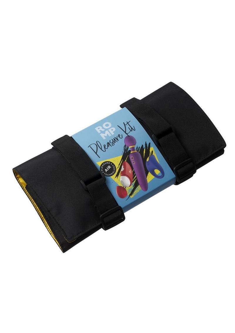 ROMP Pleasure Kit is a one-stop pleasure shop, three versatile vibrators for the raunchiest, most unbridled fun a couple can have together. This Pleasure Kit contains ROMP Flip, a powerful wand massager; ROMP Juke, the sensual vibrating couple’s ring; and ROMP Free, a revolutionary Pleasure Air Technology clitoral stimulator. Thanks to the durable roll-bag, ROMP Pleasure Kit is at your side for whatever the journey life throws at you.