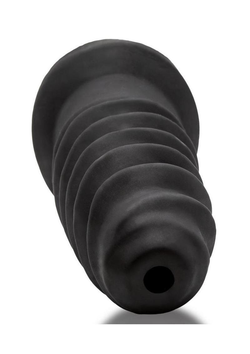 OXBALLS new hole-shagger SCREWDHOLE (it fills a hole turning it into a rubbery tighter fuck-pucker) in amazing squishy-soft NIGHT EDITION silicone-blend SILSOFT SILICONE mix, in deep dull velvet-black color—a soft fuck-tube plug designed for the hardest, darkest-night play.